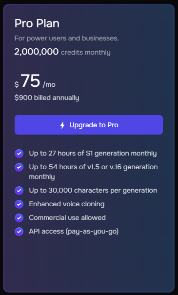 I liked Fish Audio but even their heftyist plan doesn’t cover what I need.