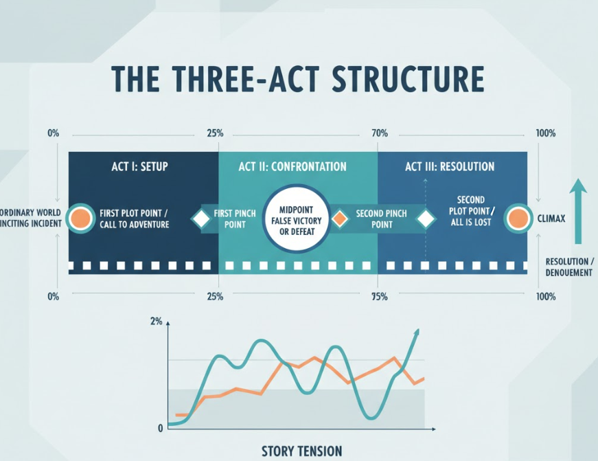 I asked Chrome Gemini to create a 3 Act Structure graphic for me. Here is what I got: