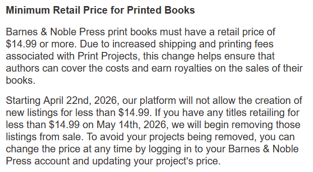B&N is supposed to advocate for indy writers but clearly they’re not. Amazon doesn’t do any of this. With all the problems Amazon has it’s still better than this.